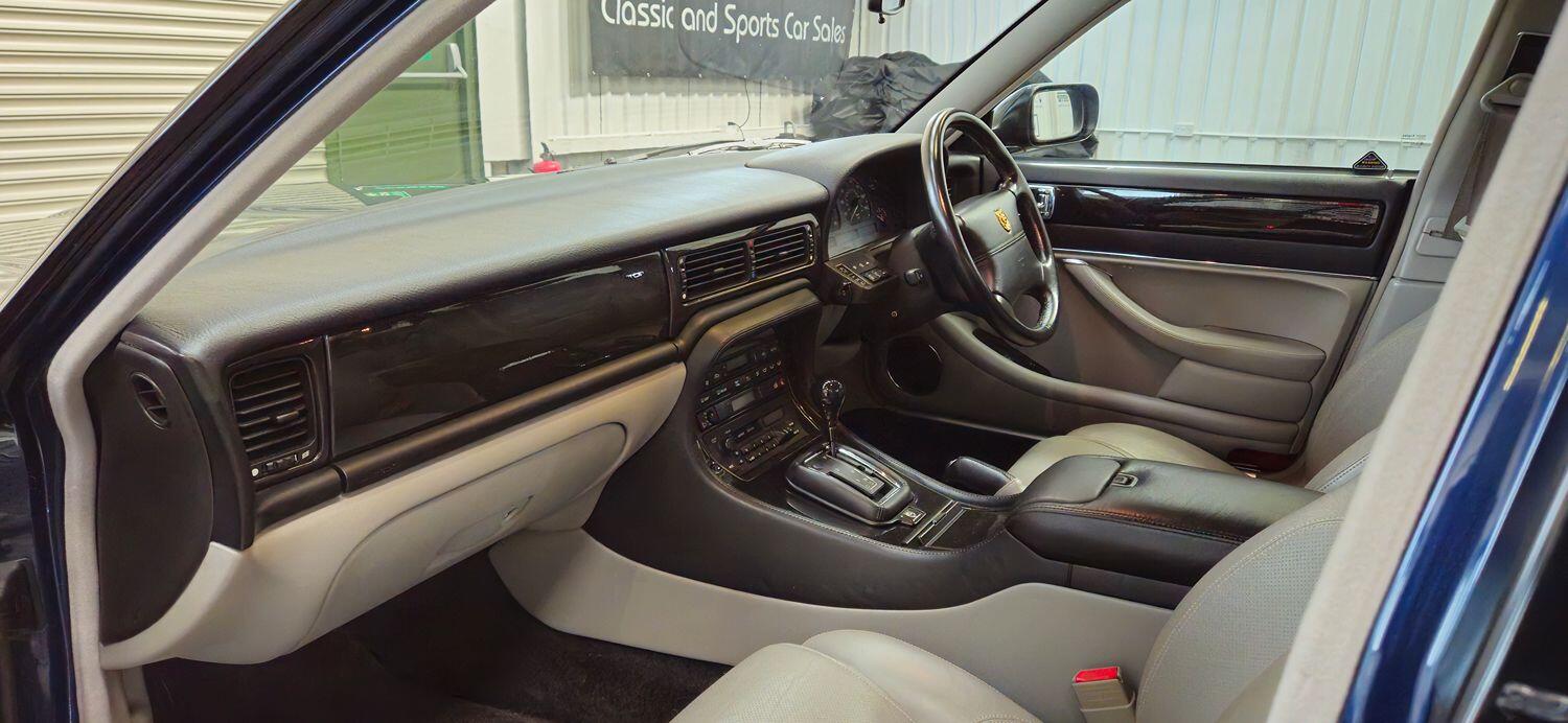 A fairly comprehensive specification on this 'Sport' includes electric windows, electric mirrors, leather seats, A/ C, 6 CD changer, original Jaguar stereo, cruise control, folding mirrors etc.