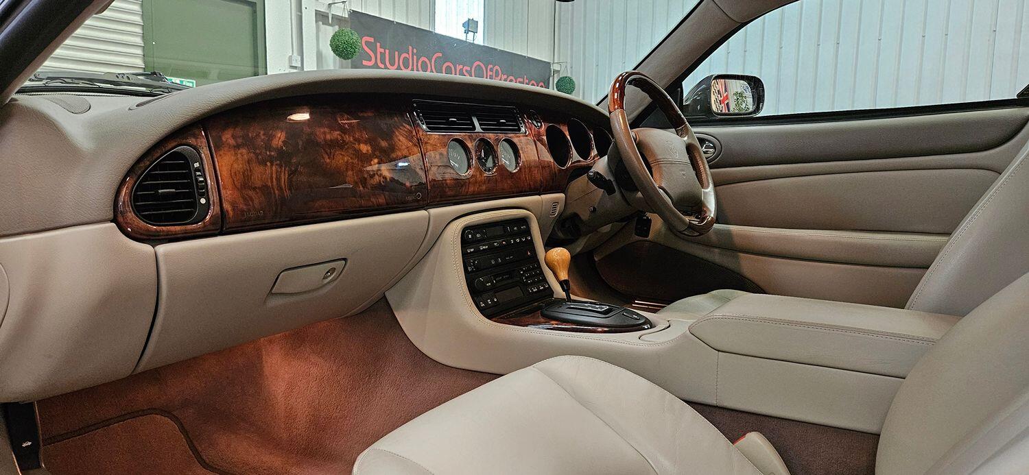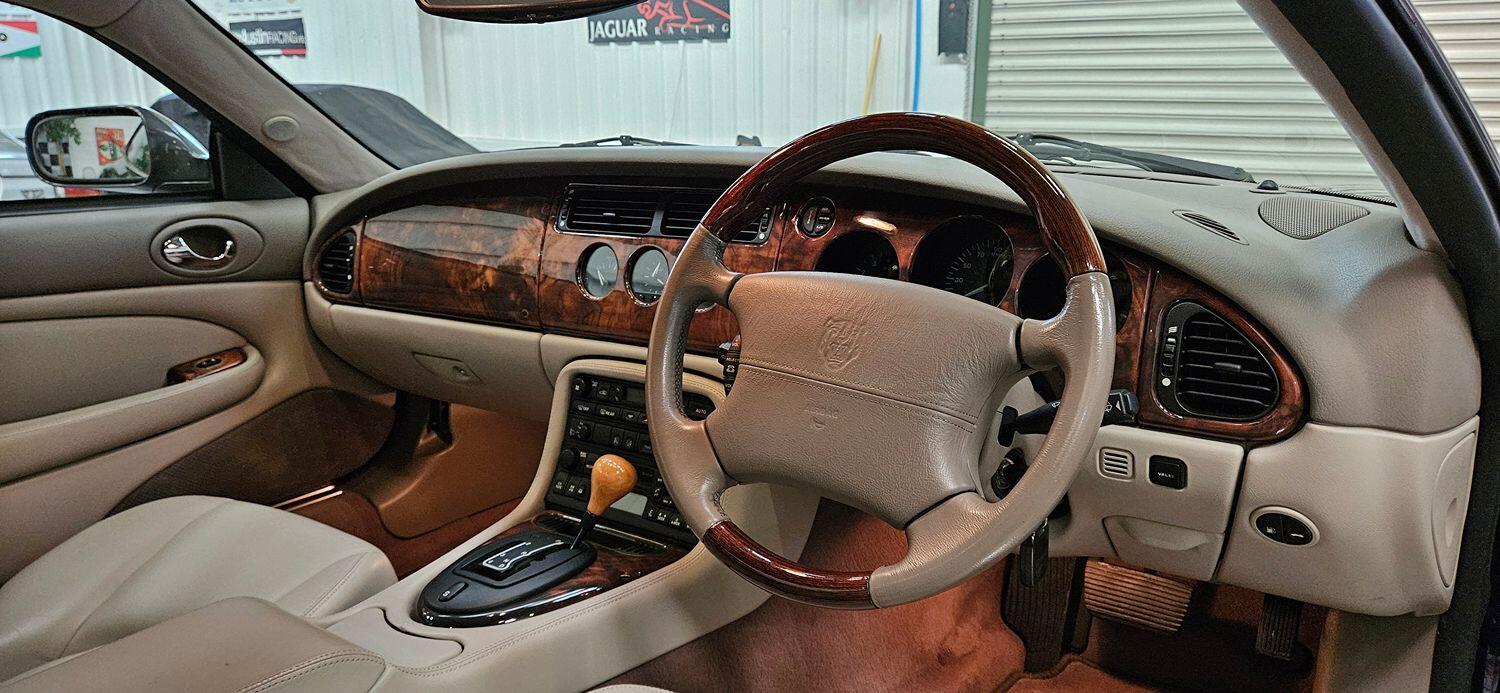 Inside the car too can confidently be described as being close to perfect. The leather is excellent, the driver's seat has almost no wear, the wood finishers and trim are like new as is the headliner. All the usual Jaguar spec is there including electric windows, electric seats, electric mirrors, air-con, original Jaguar stereo with CD changer. Even the electric aerial works correctly!